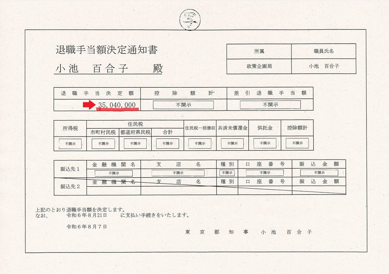 【独自】小池知事退職金、今回もチャッカリ3500万円受領💸
