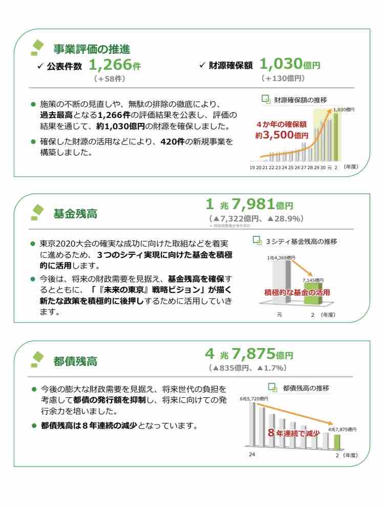 実際に、このような厳しい状況の中、420にもわたる新規事業は「5G」「ゼロエミッション」「イノベーション」等目新しく、聞えも良く世論の関心を引くかもしれませんが本当に必要なのか、小池知事の2期目に向けたアピールが自己目的化していないか、懐疑的な事業も散見されます。
