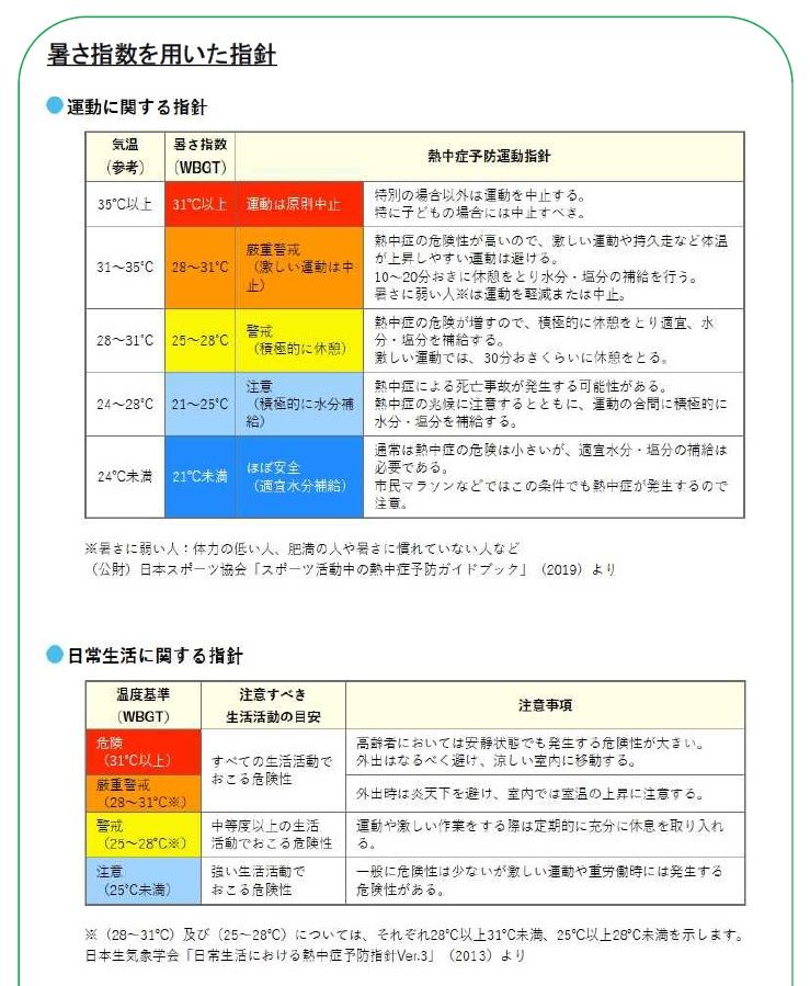 ▲平成30年熱中症による救急搬送状況の概要資料より「熱さ指数を用いた指針」