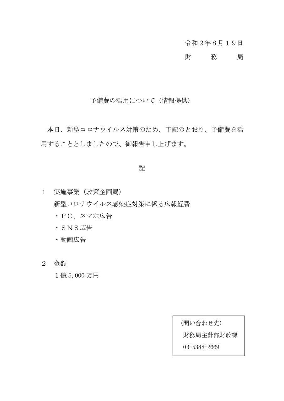 お姐の不穏な(笑)動きを察したか?ザックリした広告費が財務局より「広告に係る予備費」につき突如8月19日にメールにて届いたのです。