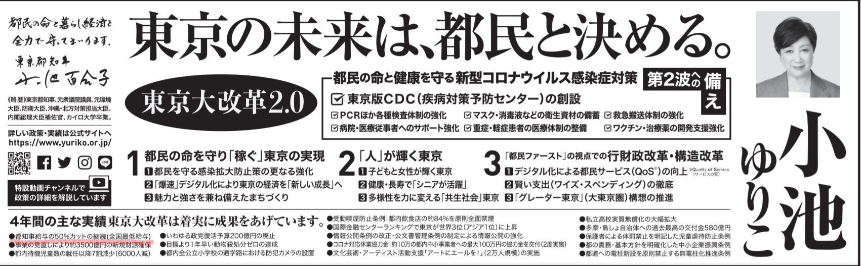 一方の小池知事は都合のいいことや、自分が目立つことは血税使ってCMバンバンでて徹底アピール