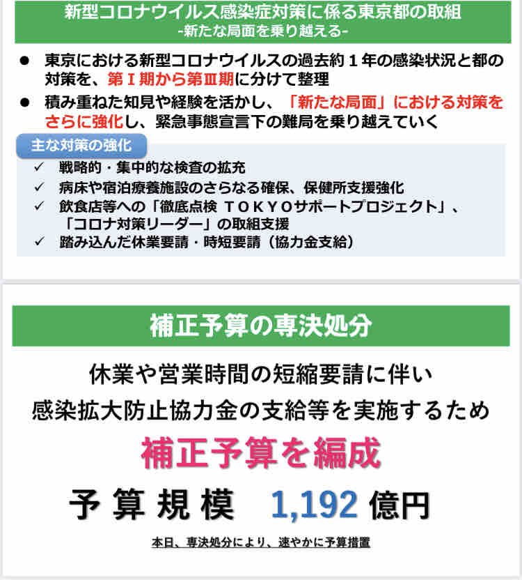 夜に行われたコロナ対策に係る記者会見でも論理的説明に欠け、経済的にも精神的にもおいつめられている都民に思いを馳せる様子はまったくくみとれませんでした。
