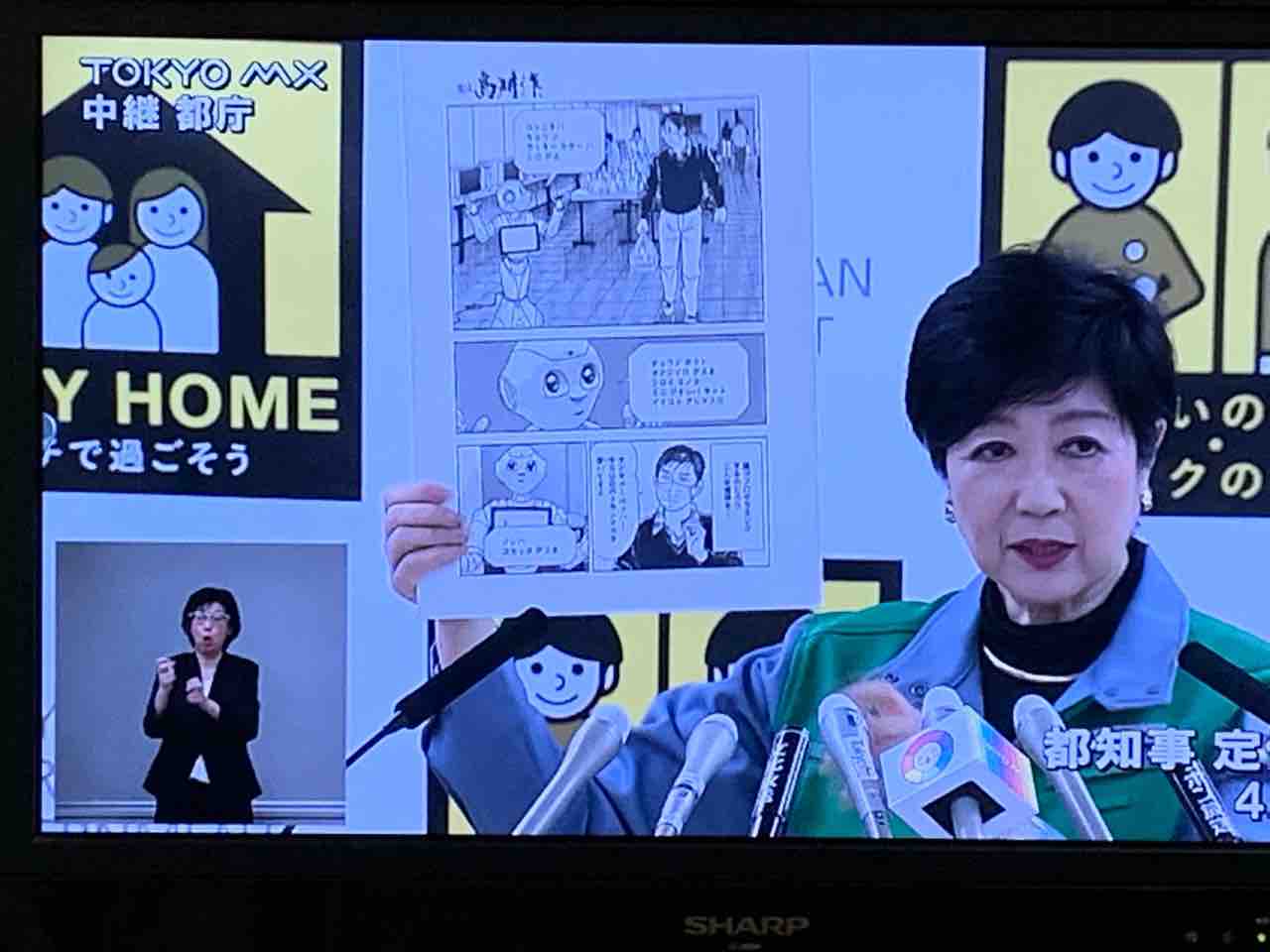 ▲4月23日定例記者会見で「相談役島耕作」のコロナ罹患体験記漫画にご満悦の知事