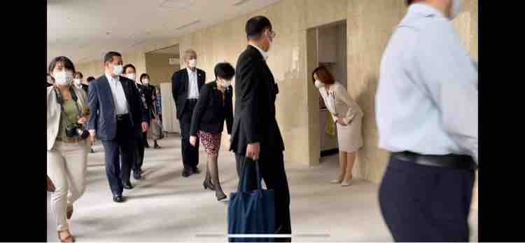 ▲都議会恒例の知事の会派まわり。お姐の前は軽く会釈しただけで足早に去っていきました