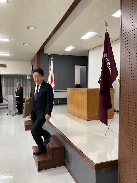 丹羽県連会長から党の公認証をいただく際、「厳しい選挙になるが横井さん、がんばってください。」と激励。「しっかりがんばります。」と決意を申し上げた。