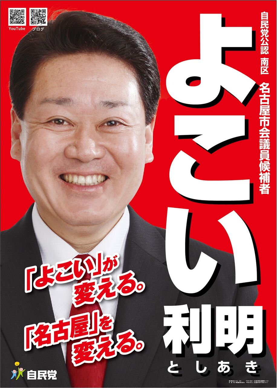名古屋市会議員には、よこい利明をどうぞよろしくお願いいたします。