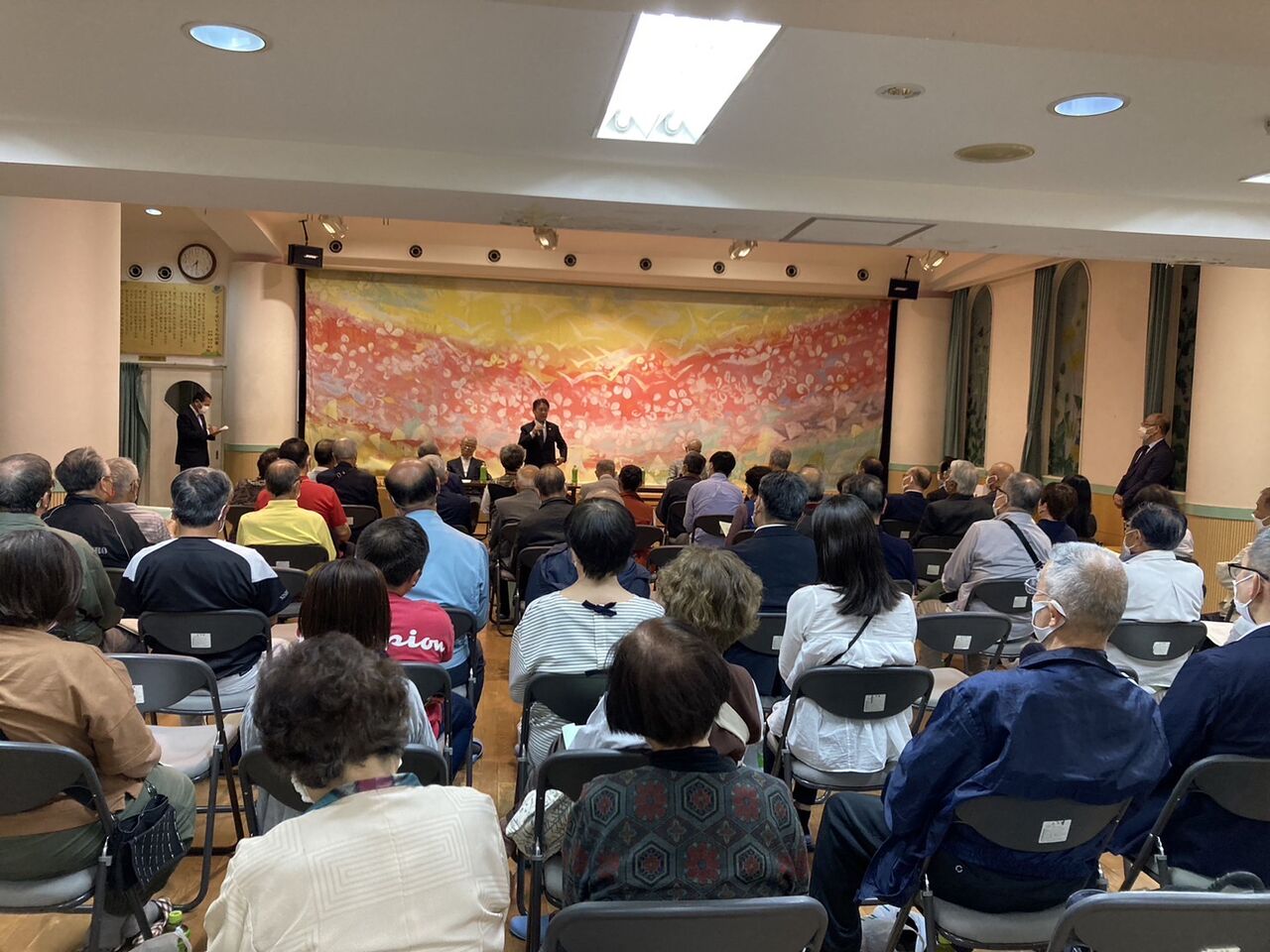 よこい利明選挙対策本部解散式を開催した4月21日(金)、会場には選対顧問・役員の皆様にお集まりいただき、今回の選挙戦に対する総括とともに今後の取り組み等について協議した。