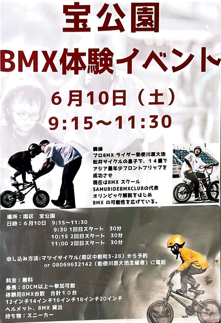 主催するのはプロBMXライダーの勅使川原大地さん。BMX専門店として有名な松井サイクルで生まれ、自転車競技「BMX」を5歳から開始。様々な大会で優勝を飾るなど、日本を代表するライダー。現在はあま市で勅使川原大地 BMXスクールを開校している。場所:宝公園(南区中割町)日時:6月10日(土)午前9時15分~11時30分