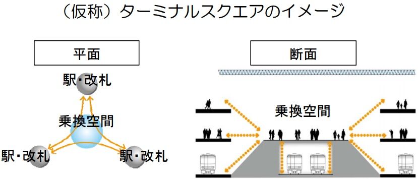 2027年のリニア開業を含め5社10路線が乗り入れる名古屋駅が、地上・地下の動線が複雑に入り組んでおり、乗り換えが非常にわかりづらくなっていることから、乗り換えの利便性の大幅な向上を目指した名古屋駅始まって以来の大規模な改造計画である「ターミナルスクエア構想」を名古屋市が公表。各路線同士のスムーズな乗り換えを想定したターミナルスクエア(乗り換え空間)の整備により、歩行者動線や案内サインを改良することで、初めて名古屋駅を訪れる人や、外国人にもわかりやすい「国際レベル」のターミナル駅の整備を目指している。なお、名古屋市はターミナルスクエアの整備費として700億円を予定する。