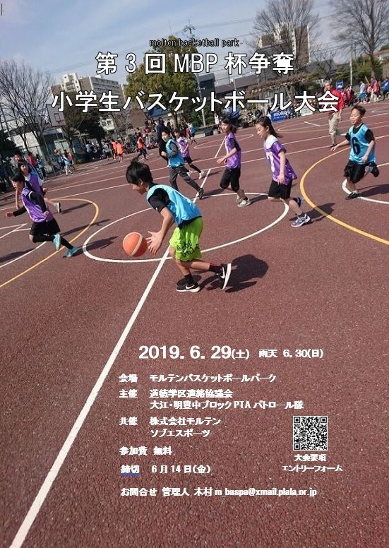 第3回MBP(molten basketball park)杯争奪小学生バスケットボール大会が開催されるにあたり、参加する小学生チームを募集している。