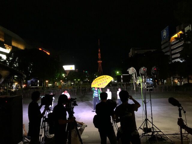 さて、テレどまつりの決勝戦であるファイナルは8月30日(日)午後8時から開催予定だったが、機器のトラブルで若干遅れて始まった。ヨコイはスタッフや河村市長らとともに、どまつり本部に設置されたパブリックビューイングで鑑賞した。