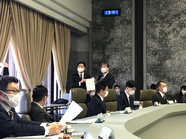 名古屋市会都市活力向上特別委員会と名鉄との懇談会が行われた2月9日、名古屋市公館に名古屋鉄道株式会社代表取締役副社長、髙﨑裕樹執行役員をはじめ名鉄幹部社員の皆様、そして特別委員会委員、藤條聡名古屋市住宅都市局長はじめ局幹部、総務局総合調整部幹部職員が集まり、意見交換が行われた。