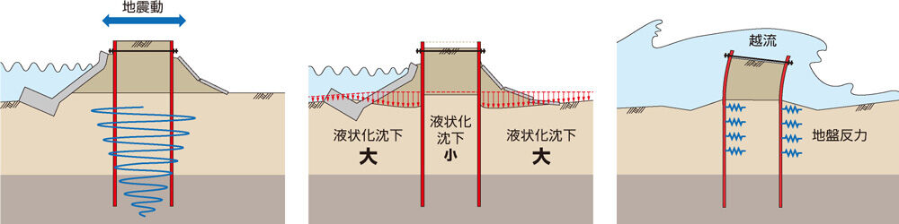 東日本大震災以降、堤防周辺が巨大地震で液状化しないよう堤防の液状化層を鋼矢板で挟み込む「鋼矢板二重締切工」が完了した地域においても、工事の効果は全く評価せず、単純に堤防高さを一律75%下げた想定をしているのが実情だ。これでは何のために堤防の液状化対策を進めたのかわからず、市民の理解は得られないばかりか、結局は誰も事前避難しないという結果になりかねない。